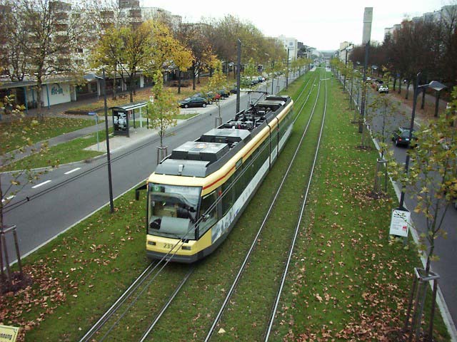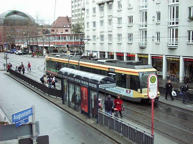 カールスルーエ交通連盟は路面電車網の拡充と利用者の視点に立った運営を目指しています。『ドイツ鉄道への路面電車の乗り入れ』、『ほとんどすべての路面電車が中央広場を通るように路線が組む』などさまざまな工夫がされていて、利用者にとって大変便利にできています。こういった路面電車システムは“カールスルーエ モデル”とも呼ばれ、世界的に有名です。