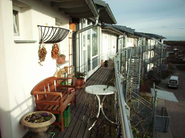 “エコロジー”と“共同社会”をキーワードにして94年に作られた郊外の住宅地です。建築材料の選定から環境に配慮し、太陽熱の利用、雨水の利用、木材の使用が積極的に行われています。コミュニティーハウスや緑地管理も住民自身が行い、都市の住宅地が失った住民同士のつながりを新しい形で実現しています。
