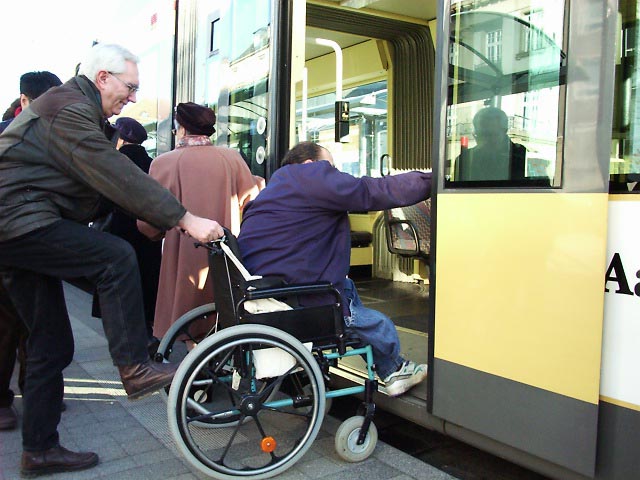 ドイツではここ10年ほどで路面電車やバスのバリアフリー化が大きく進みました。現在、路面電車やバスはベビーカーを押す人にとっての日常的な足になっています。最新の車輌と停留所では車椅子の乗客も1人で乗り降りすることができ、都市交通の先進性には驚きを通り越して感動を覚えます。