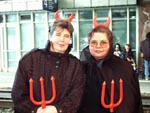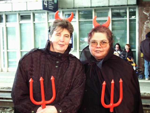 帰りの路面電車を待っている時に見かけた悪魔です。毎年、違うコスチュームを着てカーニバルに出かけるそうです。 |