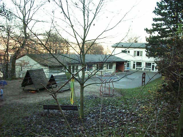 この幼稚園は丘の中腹にあります。街の中にある幼稚園の遊び場は、大抵、これよりずっと小さい。 |