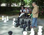 チェスの駒はプラスチック製で、公園に備え付けられた鍵付き箱の中に入れてあります。チェスをしたい人は公園の管理所から鍵を借りてくるのでしょう。チェスをしている人の腕前は分かりませんが10人くらいのギャラリーが集まっていました。みんなけっこう暇なの? |