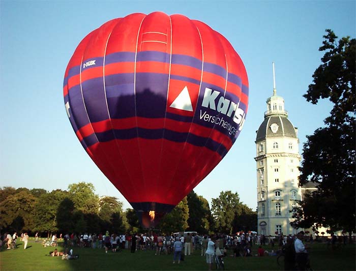 ガスバーナーを“ゴー!”とうならせて巨大な熱気球が浮かび上がりました。10人乗りの大きなゴンドラを吊るし、快晴の中、北東の方向へ飛んでいきました。 |