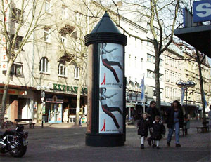 街にはこういう円柱型の広告塔がたくさん立っています。 |